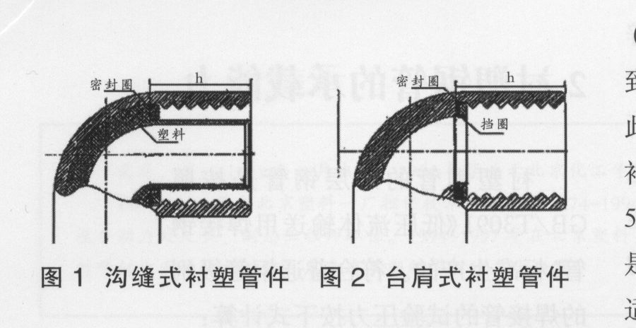 襯塑鋼管的連接采用可鍛鑄鐵(瑪鋼)襯塑管件,是可鍛鑄鐵(瑪鋼)管件經(jīng)過表面處理以后,在注塑機中注塑成型的,目前市場上有2種形式(如圖1和圖2)。